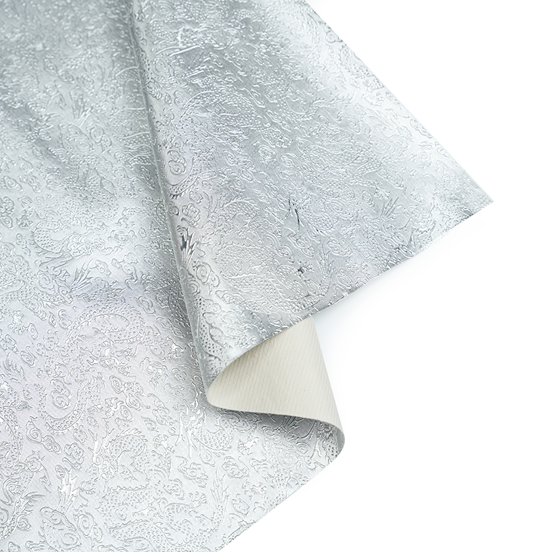 Chun cobhsaíocht agus seasmhacht struchtúrach a chinntiú, tá tacaíocht fabraice cniotáilte ag leathar scannán miotalach PVC. Ní hamháin go neartaíonn an tacaíocht seo an t -ábhar ach cuireann sé ciseal breise láidreachta leis. Cuireann an creatlach cniotáilte le stóinseacht fhoriomlán an leathair, rud a fhágann gur rogha iontach é chun málaí agus bagáiste a dhéanamh atá deartha le haghaidh fad saoil agus iontaofachta.
