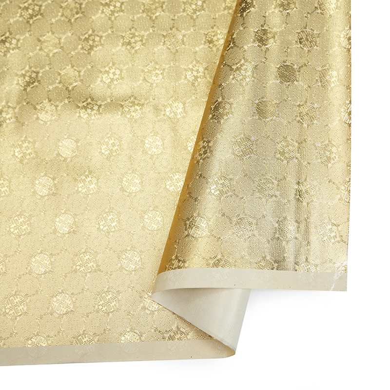Mar a thugann an t -ainm le fios, is é an tréith shainmhínithe a bhaineann leis an leathar faux seo a dhath óir radanta. Cuireann an bailchríoch lonrach cáilíocht lustrous leis, rud a chruthaíonn tionchar amhairc iontach.