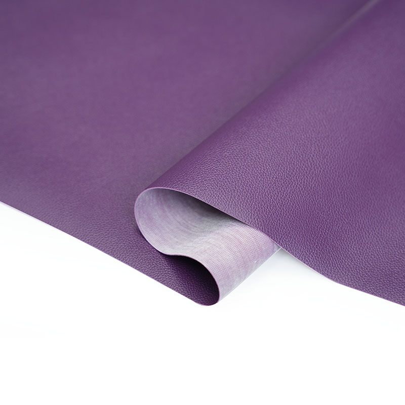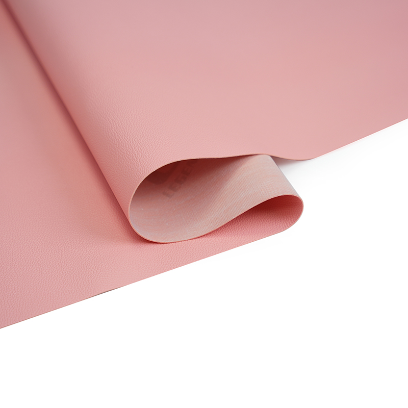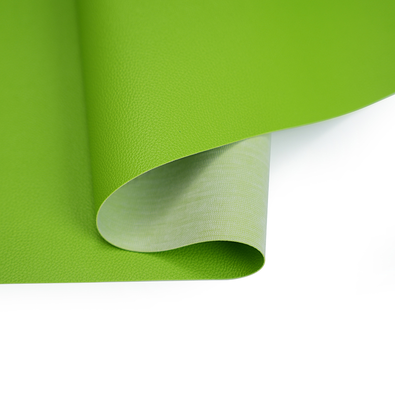 Tá tacaíocht déanta as fabraic chniotáilte ag an leathar PVC. Soláthraíonn an tacaíocht seo tacaíocht agus cobhsaíocht bhreise don ábhar, rud a fheabhsaíonn a neart foriomlán agus a marthanacht.