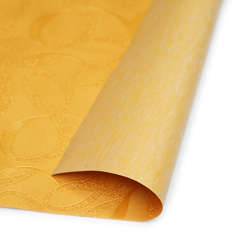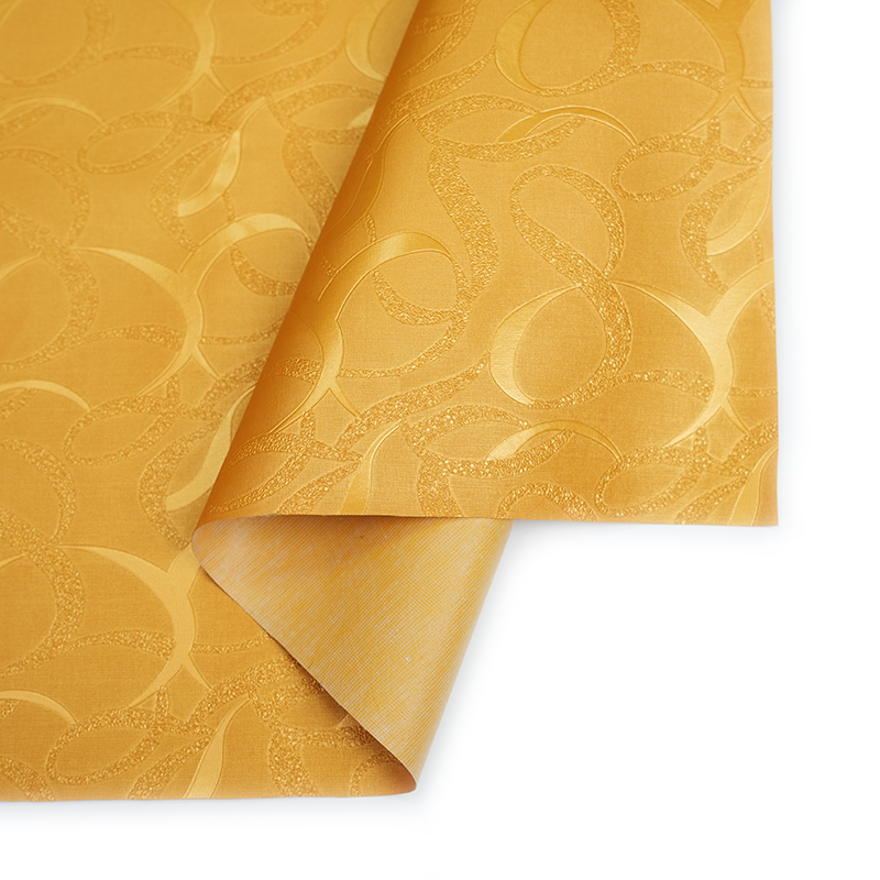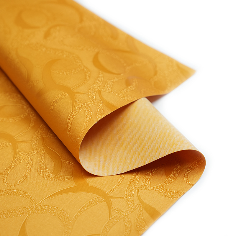 Leathar sintéiseach PVC buí le haghaidh maisiúcháin, polaiméir sintéiseach a bhfuil aithne air as a mharthanacht agus a sholúbthacht. Cinntíonn sé seo go bhfuil an leathar sintéiseach fadtréimhseach agus frithsheasmhach le caitheamh agus le cuimilt. Tá sé oiriúnach d'iarratais laistigh agus lasmuigh araon, rud a chiallaíonn gur rogha ildánach é d'aon tionscadal maisiúcháin.